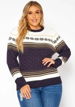 Asoph Plus Size Plaid Funnel Neck Sweater