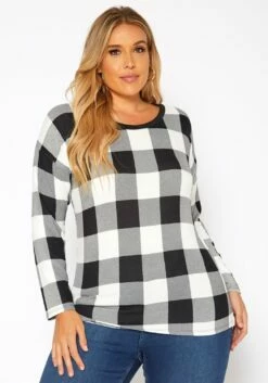 Asoph Plus Size Plaid Print Long Sleeve Top