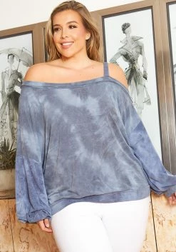 Asoph Plus Size Tie Dye Single Strap Off Shoulder Sweater