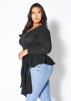 Asoph Plus Size Tie Hem Ribbed Sweater