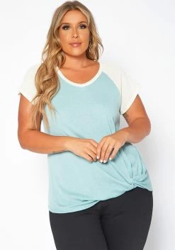 Asoph Plus Size Waffle Knit Baseball Sleeve Tee Shirt