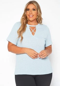 Asoph Plus Size Waffle Knit Crew Neck Tee Shirt