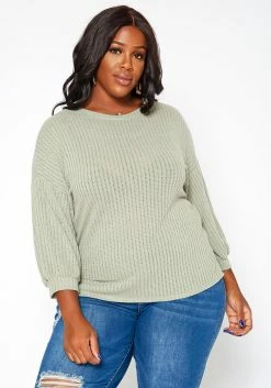 Asoph Plus Size Waffle Knit Open Back Sweater