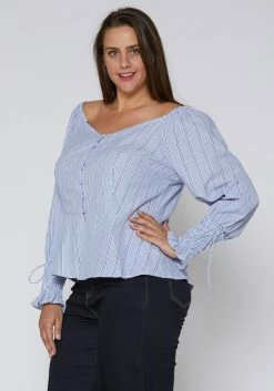 Nurode Plus Size Stripe Off Shoulder Blouse