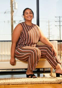 Pleione Plus Size Multi Stripe Printed Wide Leg Pants