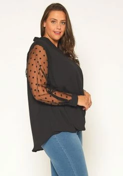 Pleione Plus Size Mesh Dot Wrap Blouse