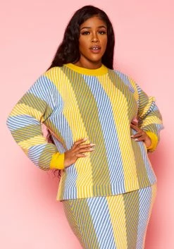 Pleione Plus Size Multi Stripe Cozy Crewneck Sweater