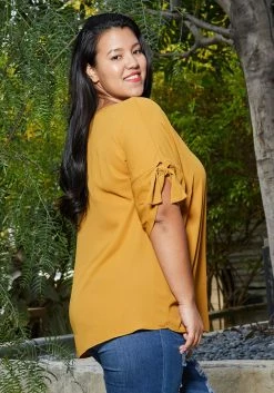 Pleione Round Neck Self-tie Short Sleeve Top Plus Size Women Clothing