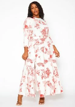 Plus Size Antique Floral Print Crop Top & Maxi Skirt Set