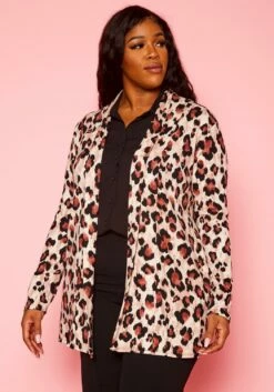 Plus Size Animal Print Open Front Cardigan