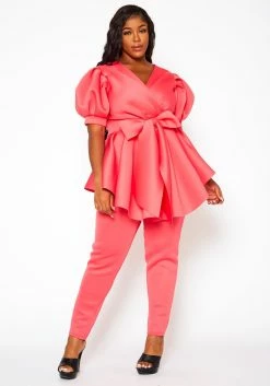 Plus Size Asymmetric Flare Hem Top & Pants Set