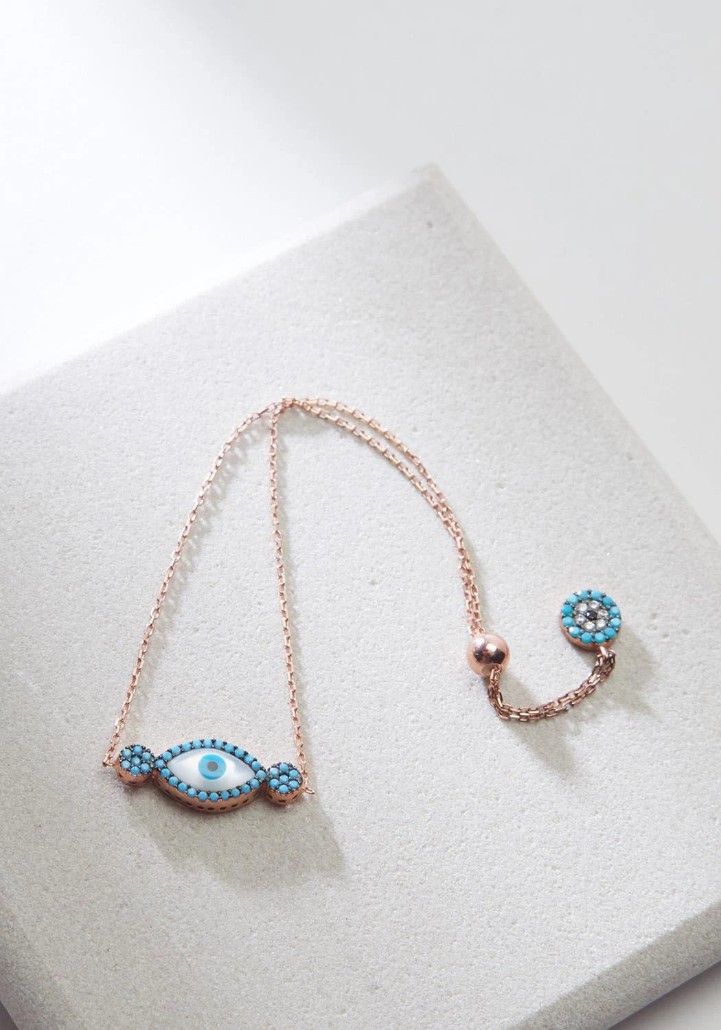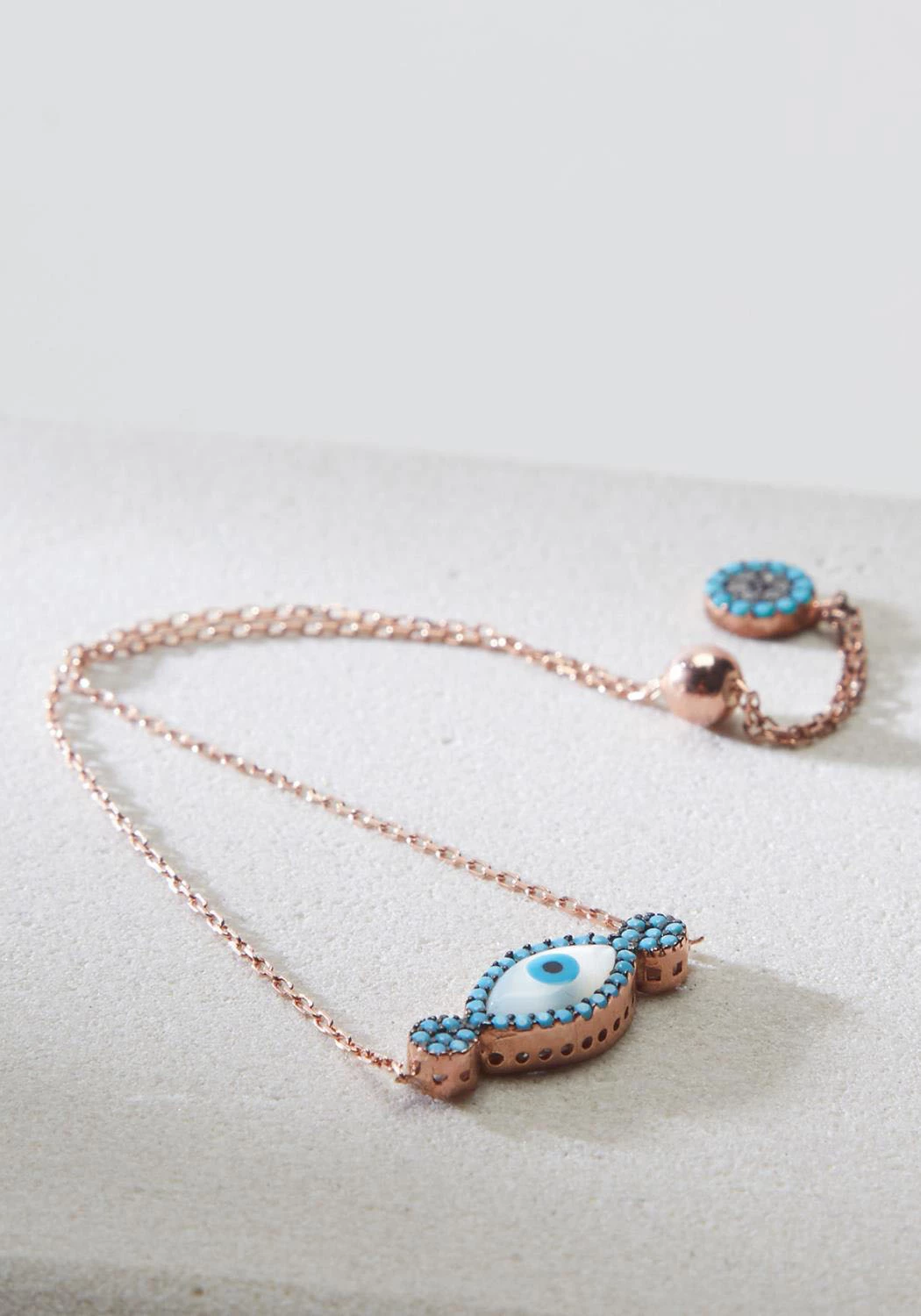 BEAUTIFUL HAND MADE ROSE GOLD EVIL EYE BRACELET ADJUSTABLE TO ALL SIZES