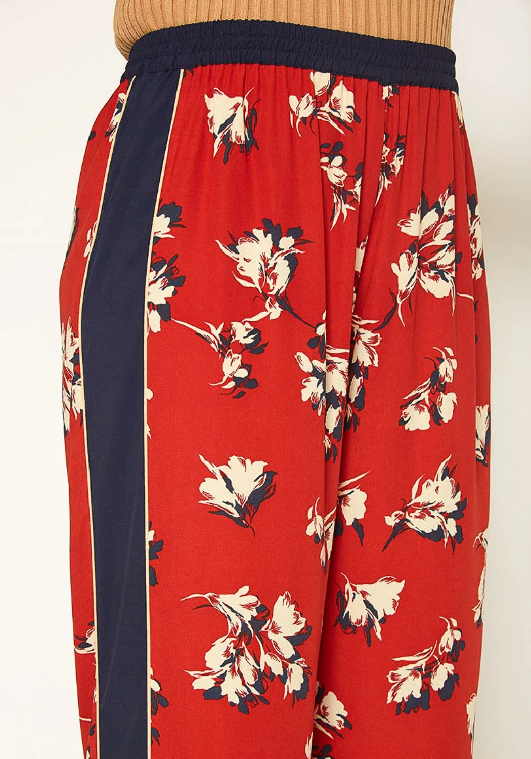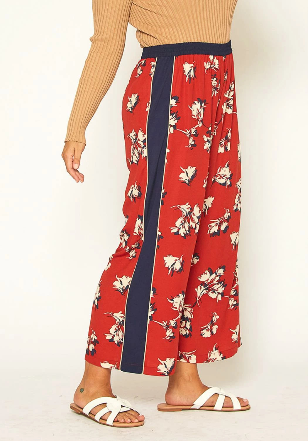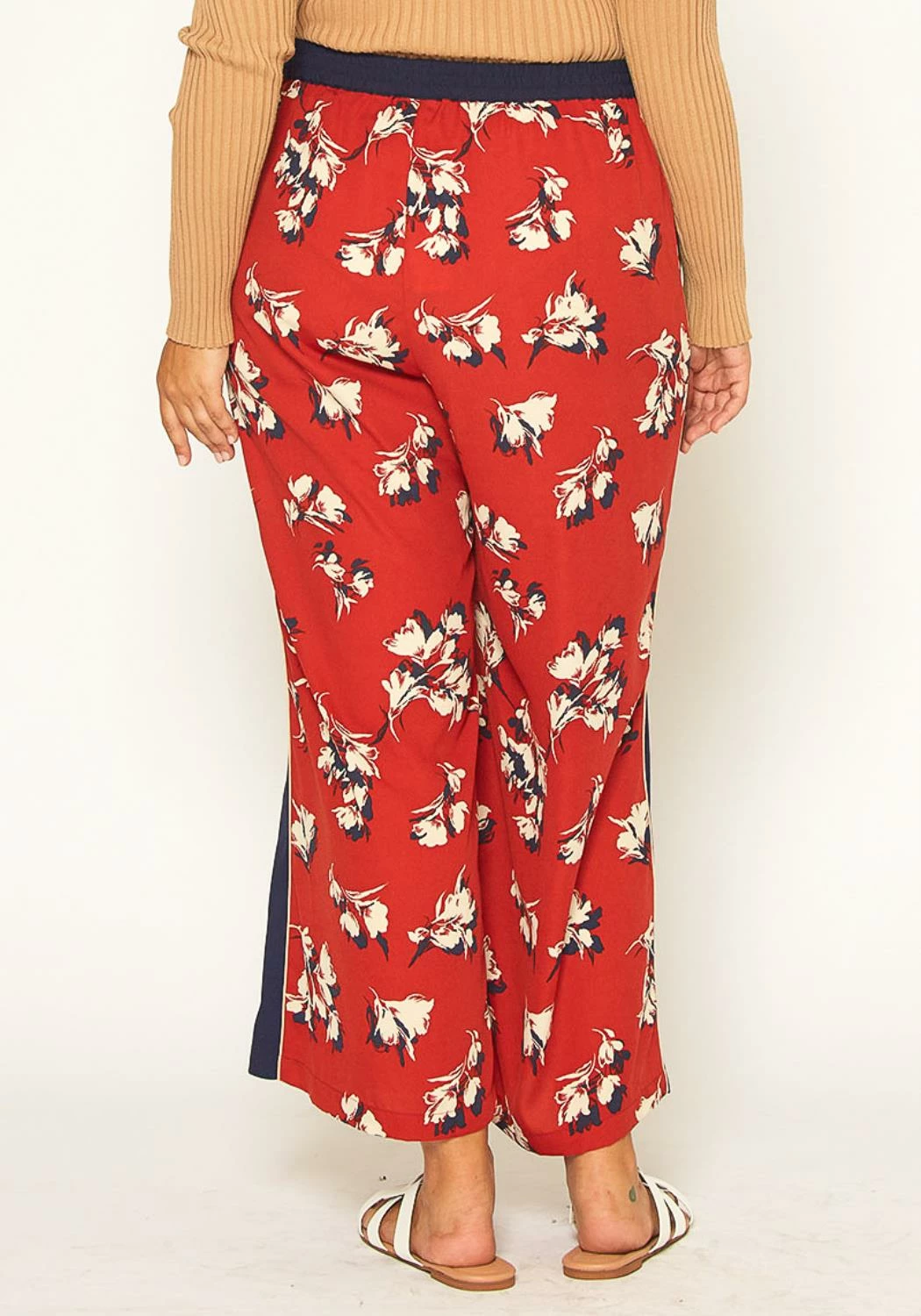 Plus size women’s flower printed wide leg palazzo pants with elastic waist.