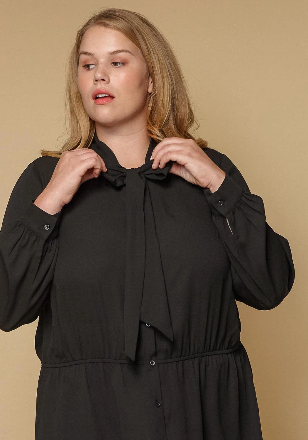 Simple yet elegant plus size women clothing tie neck button down blouse