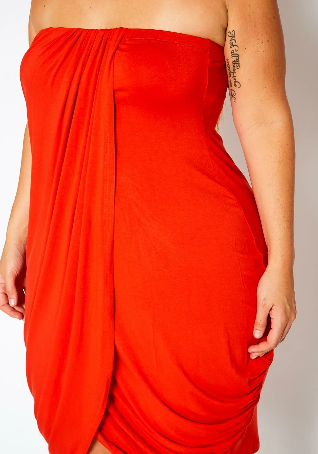 Lovely plus size women’s mini dress in draped design, tube fitting and comfortable flex-material.