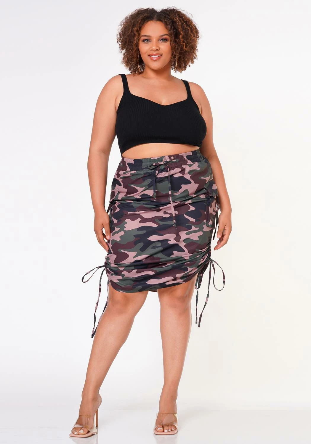 Trendy plus size women’s adjustable drawstring side skirt, you can wear it as mini skirt to midi skirt.