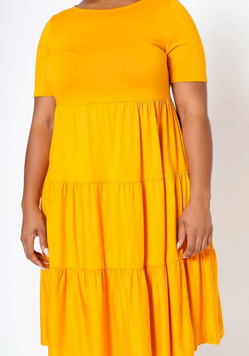 Introducing our Plus Size Effortless Ruffled Fit & Flare Dress, the perfect addition to your wardrobe! This dress features a flattering crew neckline and short sleeves, making it perfect for any occasion. The ruffled detailing adds a playful and feminine touch, while the fit and flare silhouette enhances your curves in all the right places. Available in classic black, this dress is perfect for dressing up or down. Made with high-quality materials, this dress is comfortable to wear all day long. Don’t miss out on this must-have addition to your collection!