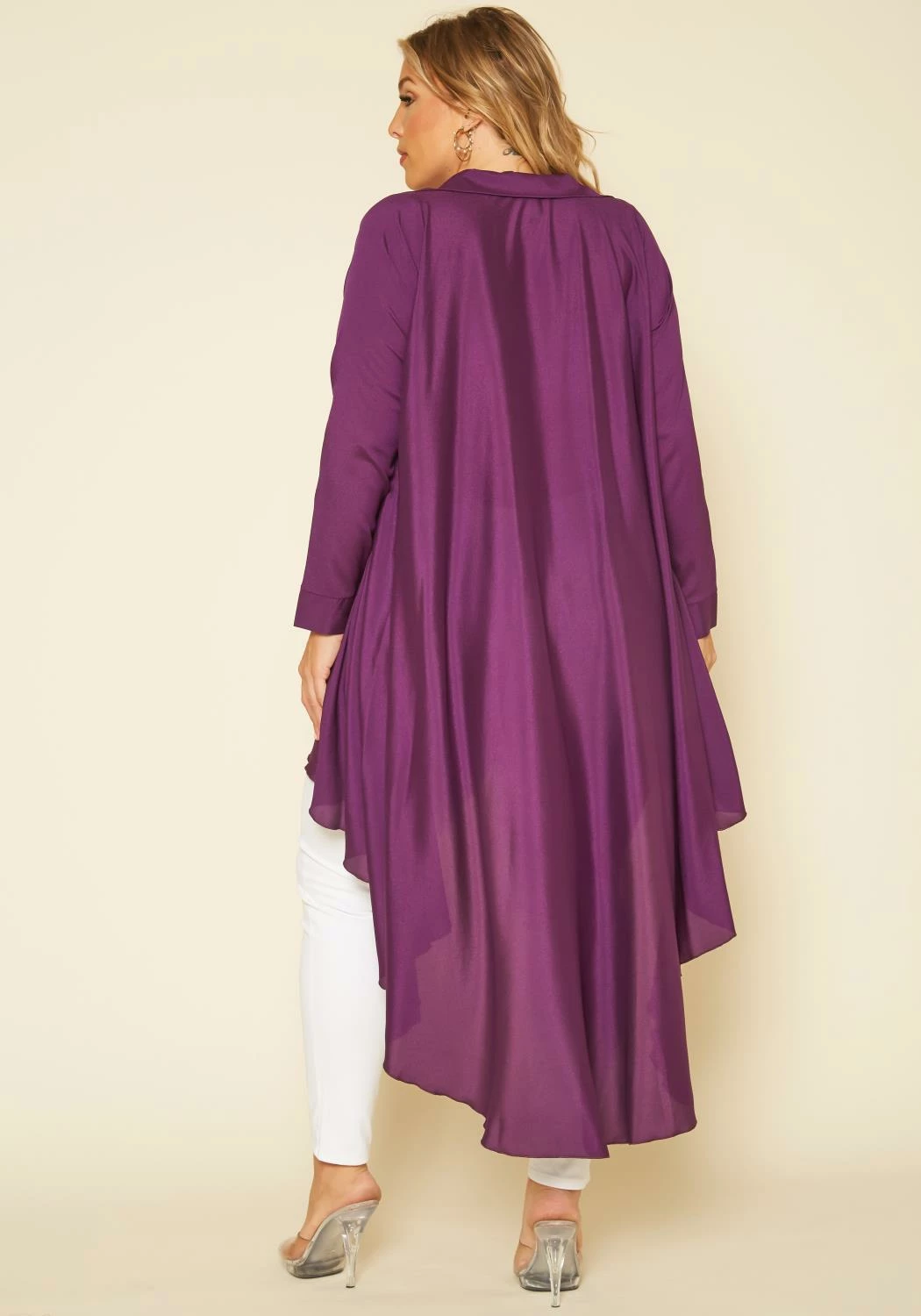 Make a fabulous impression in this plus size women’s chiffon blouse! Features high to low style and open collar ascent. *Material is sheer.