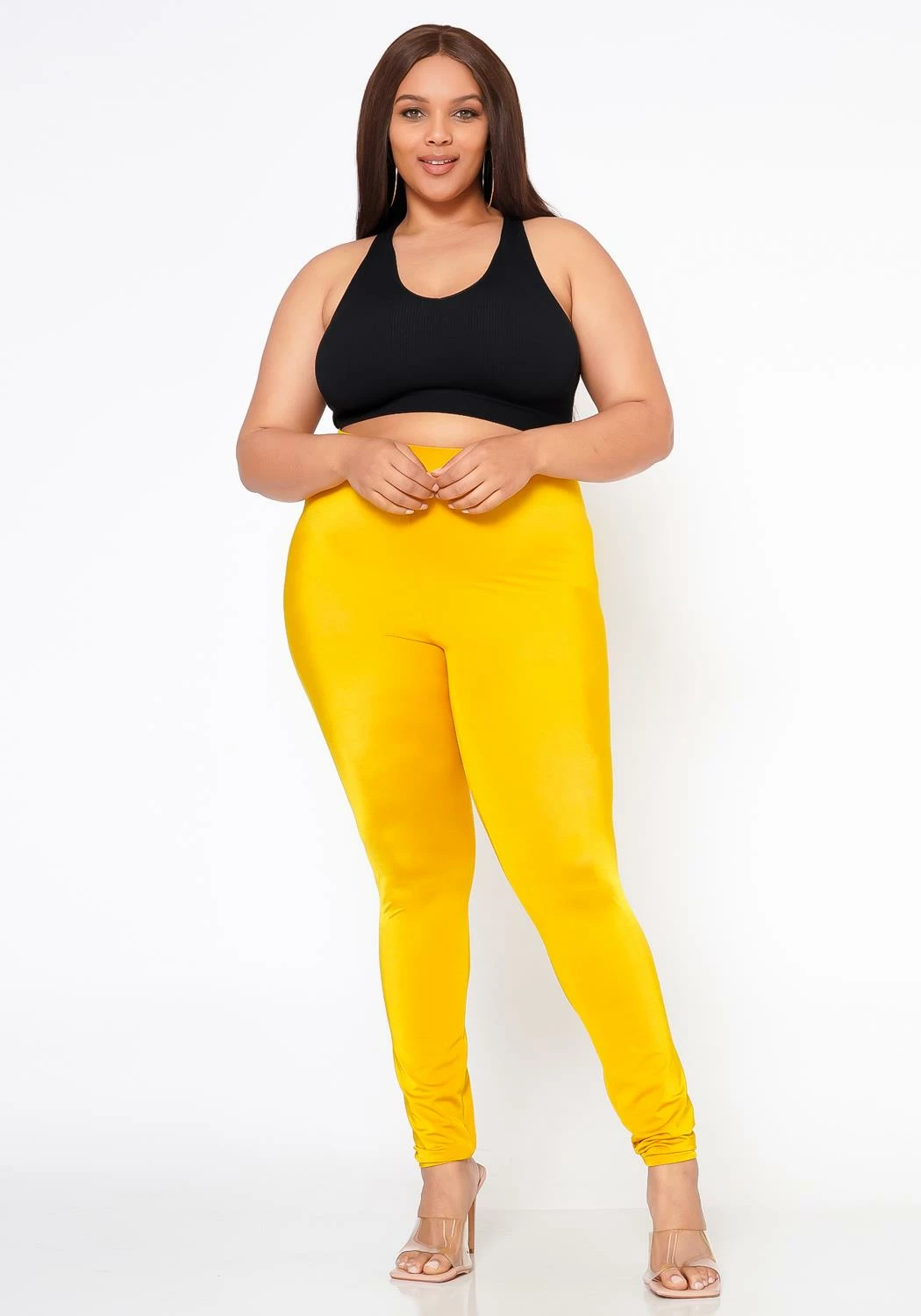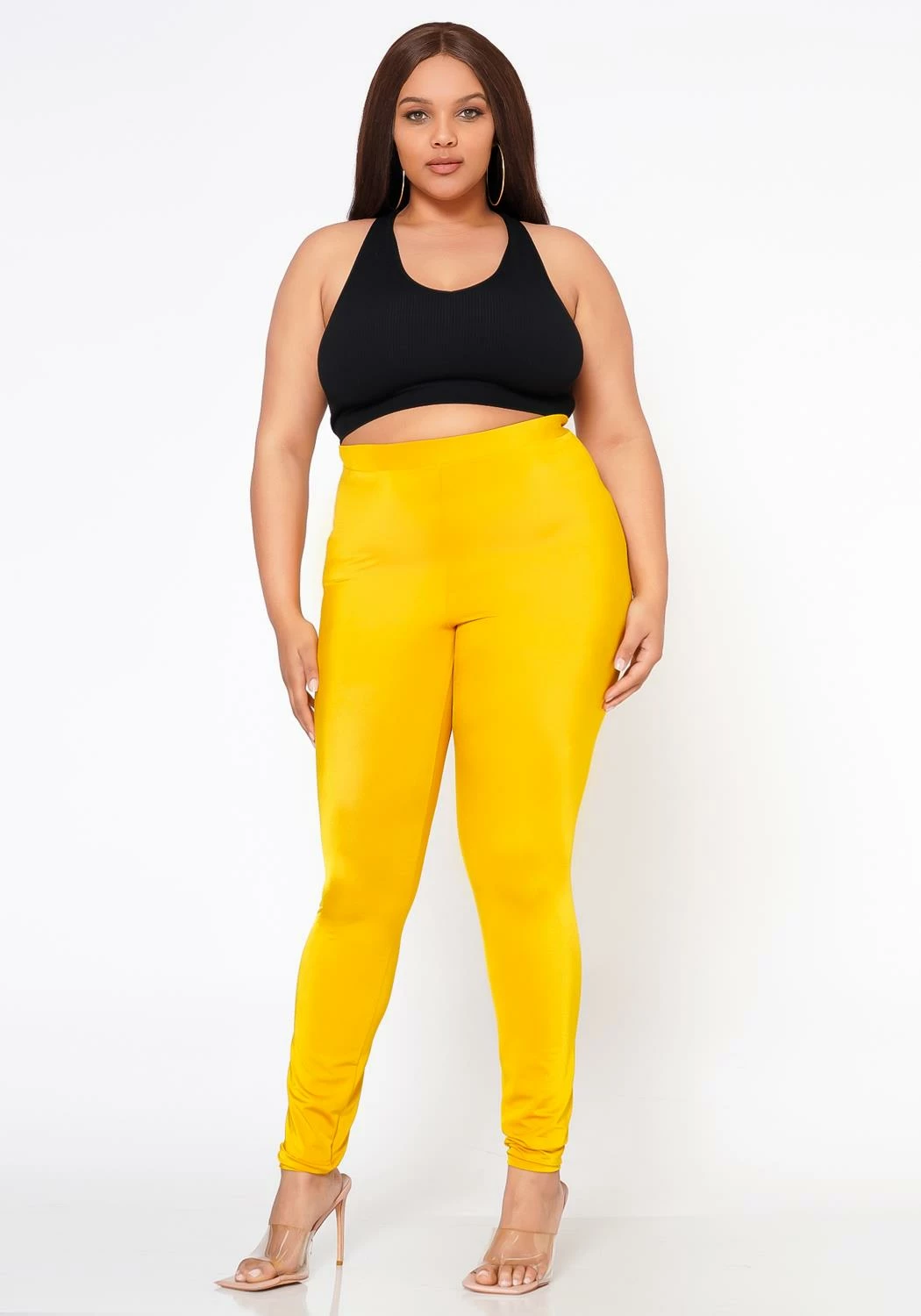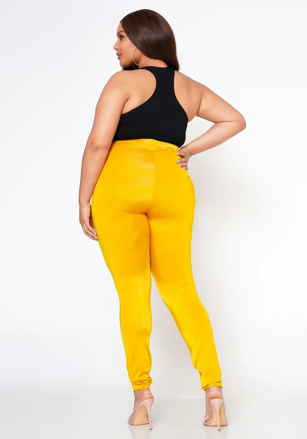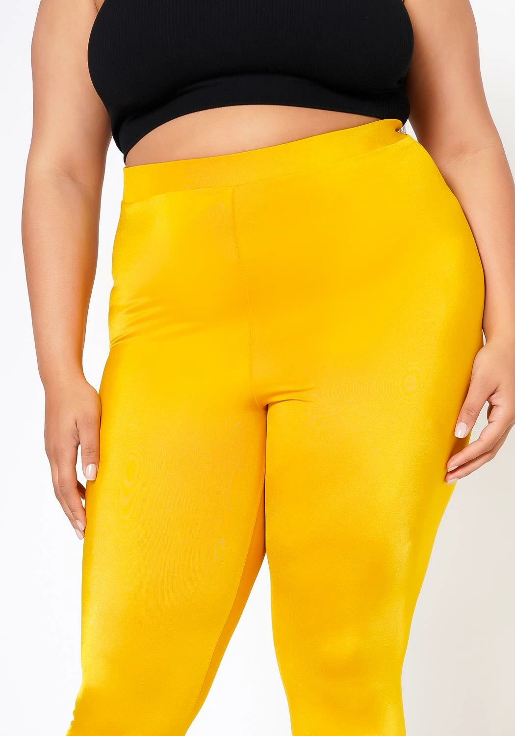 Plus size women’s high waist fit pants with quality satin-stretch material and slim design.