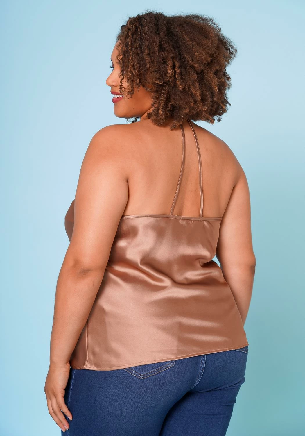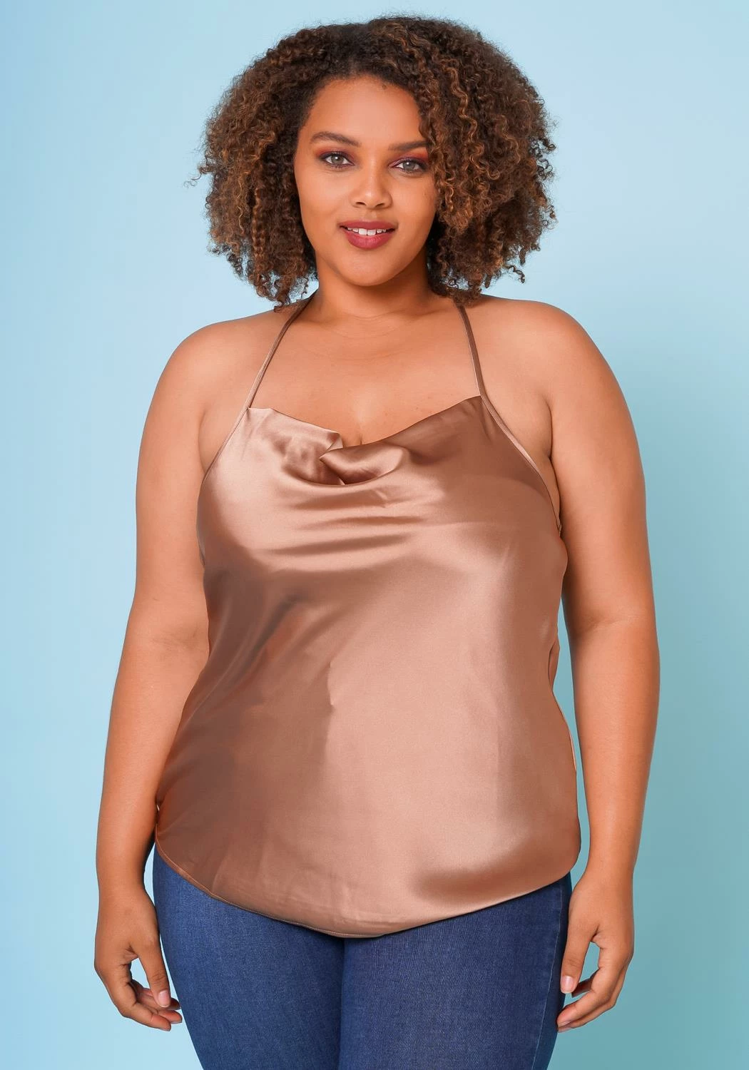 Gorgeous plus size women’s cami top in cowl neck style and quality satin material.