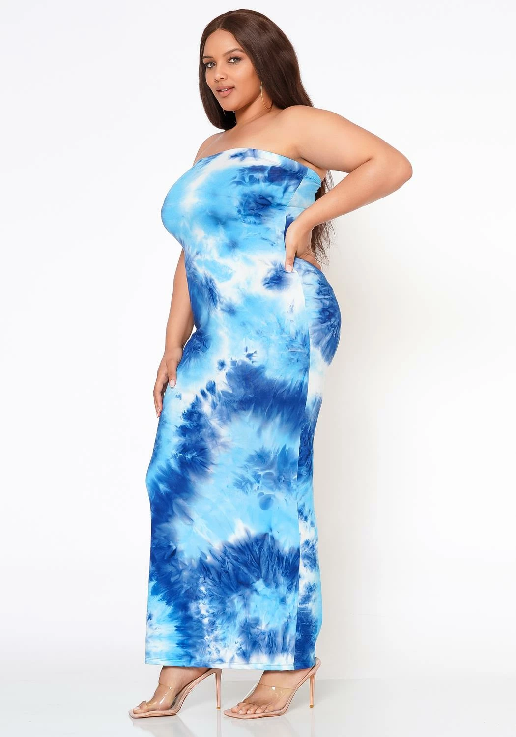 Dreamy tie dye plus size women’s maxi dress in bodycon tube fitting and butter soft material.