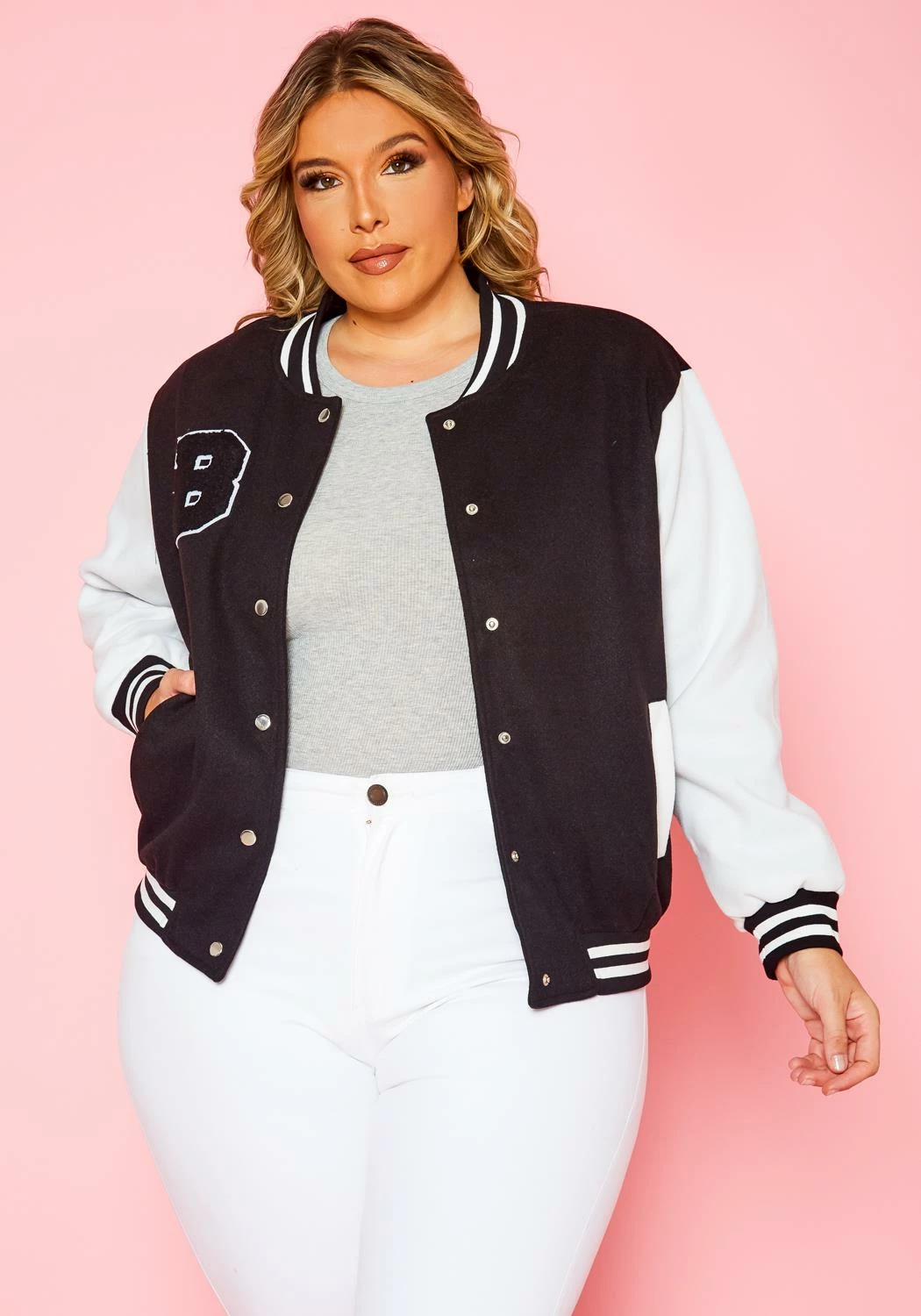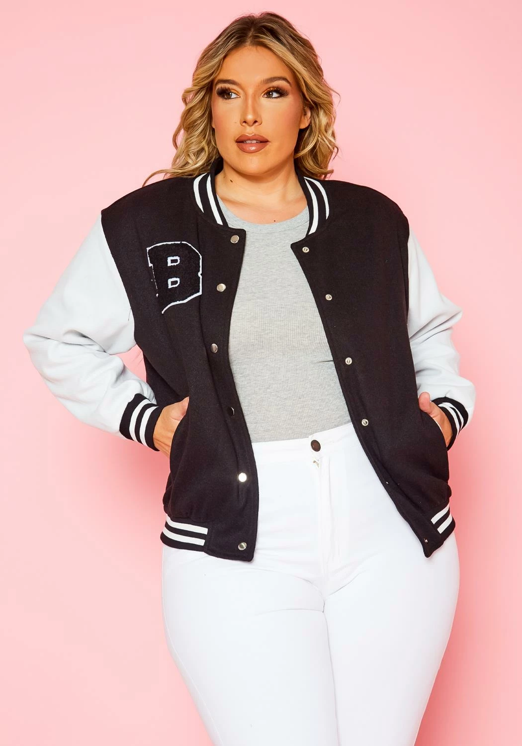 This bomber jacket is a game-changer! The fit is perfect for plus sizes, and the quality is top-notch. I love the varsity style—it’s trendy yet timeless.