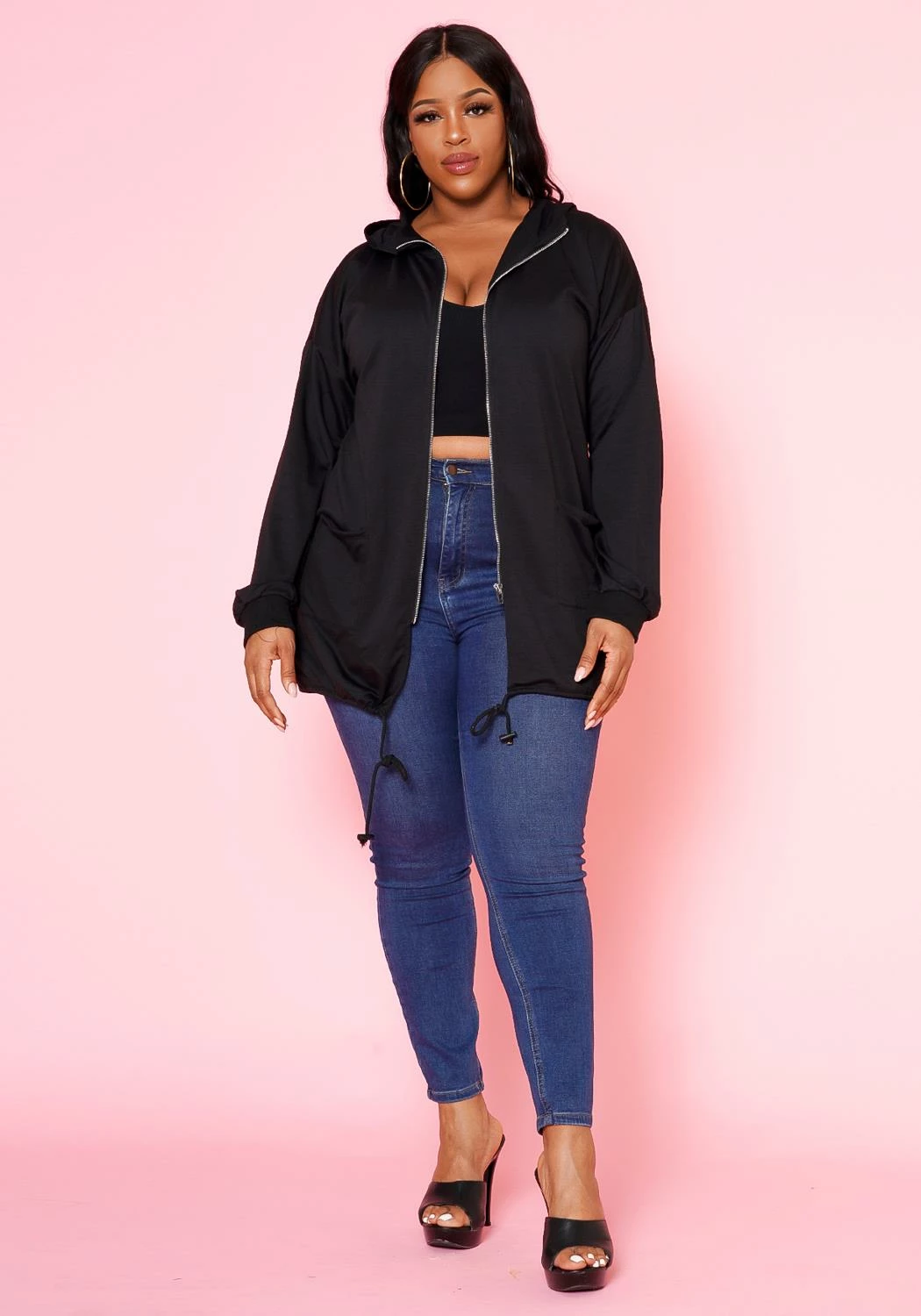 I absolutely love this Plus Size Zip Front Hooded Jacket! It fits perfectly and is so comfortable. The material is high quality, and the zip front makes it easy to put on and take off. The hood is a great addition for those chilly days. Highly recommend!