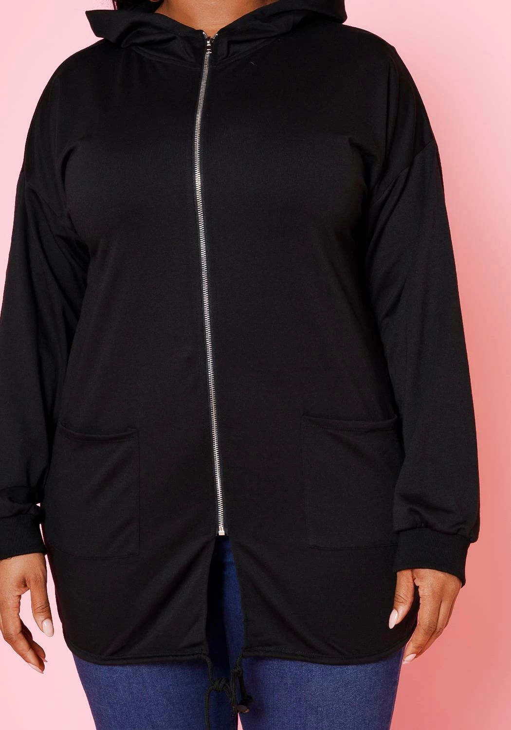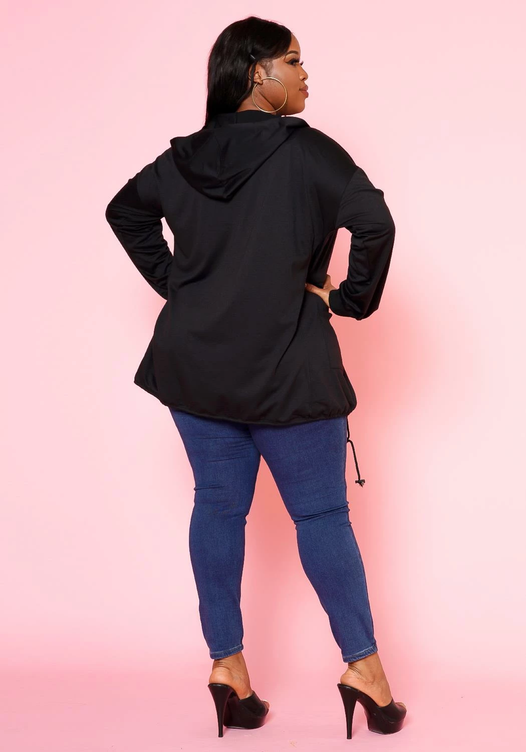 This jacket is a great addition to my wardrobe. It’s stylish, comfortable, and the plus size fit is perfect. The zip front and hood are very practical.