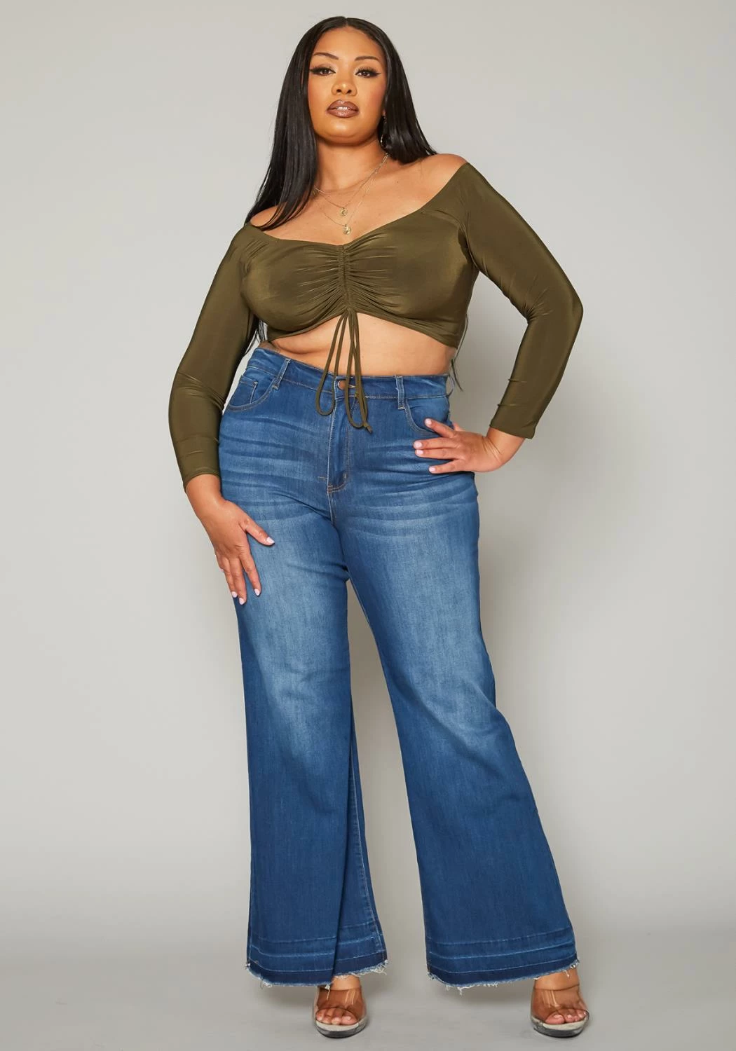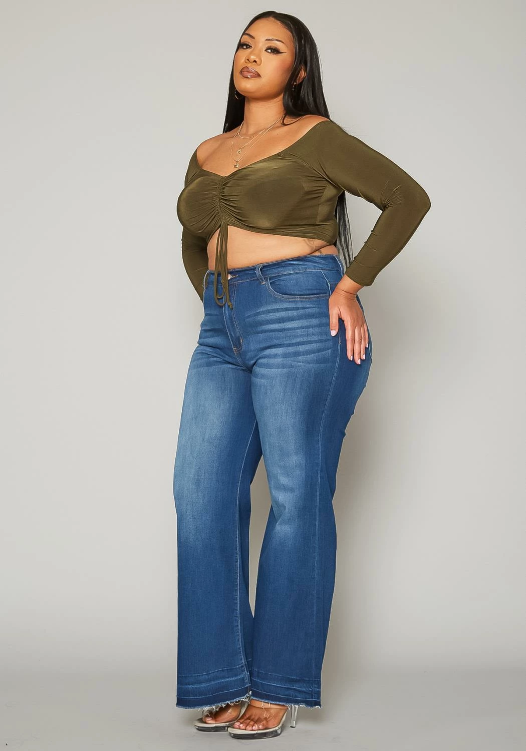 Vibrant Plus Size Bell Bottom Distressed Denim Jeans MEDIUM STONE